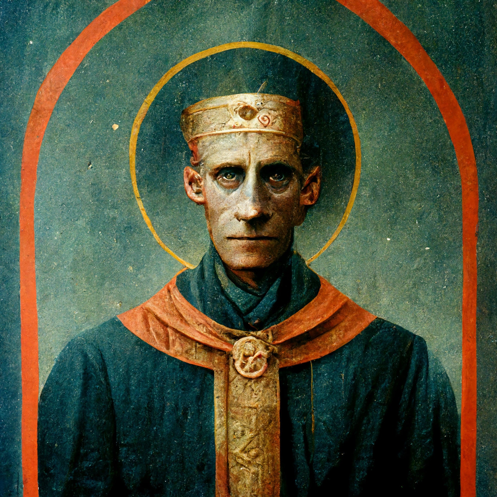 Custom AI portrait art of your patron saint. Or any other saint, for that matter. Not sure who your patron saint is? We'll look that up.