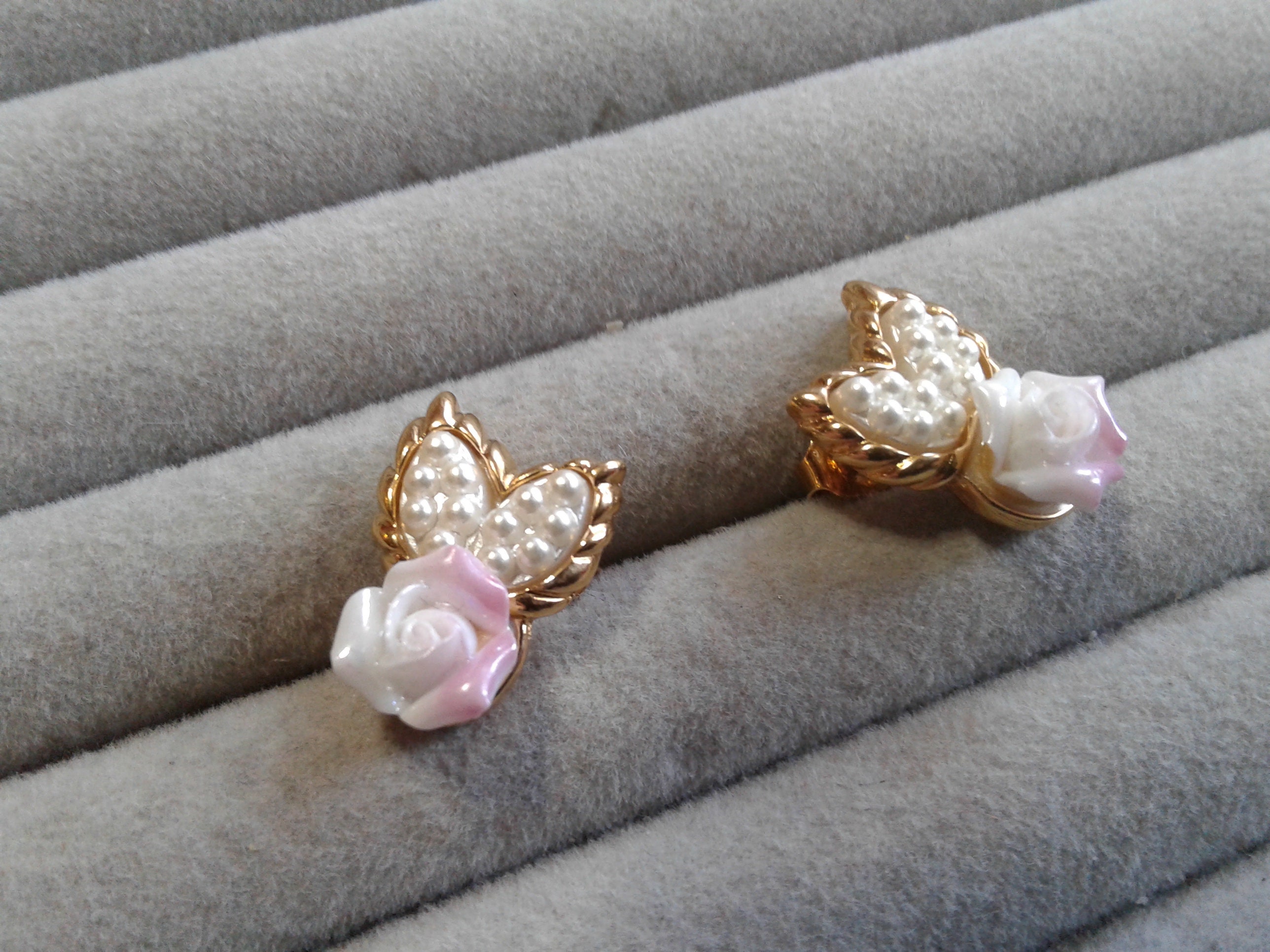 Ask a questionCharming little pink roses and pearl leaves from Avon's 1991 "Porcelain Blossom" collection (these came in clip as well, and there was a pendant). Very good vintage condition. B186